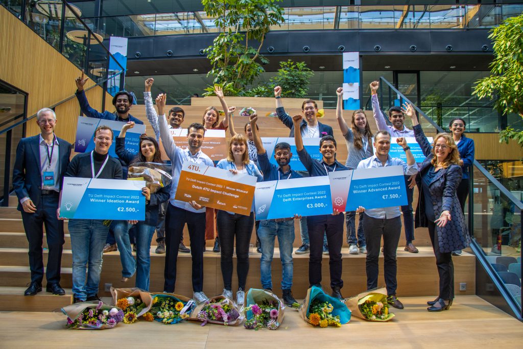 After extensive jury deliberation teams Smart Bra and CryoCOP were announced the category winners of the TU Delft Impact Contest 2022. They presented the most promising innovations to make societal impact and therefore respectively received the Ideation and Advanced Awards. Biosphere Solar stole the hearts and minds of the people in the crowd and won the Audience Award.