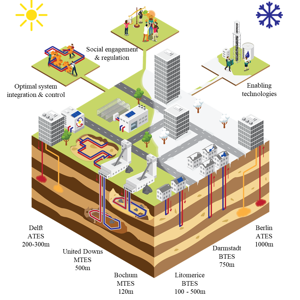 The heat produced in the summer by our geothermal well is stored in the High Temperature – Aquifer Thermal Energy Storage (HT-ATES), at approximately 200 meters depth, and is extracted again in winter. The heat from the aquifer is used to provide peak demand, instead of burning gas. The installation of the HT-ATES is part of an H-Europe project led by TU Delft and is significantly funded by the H-EU project, but not entirely.