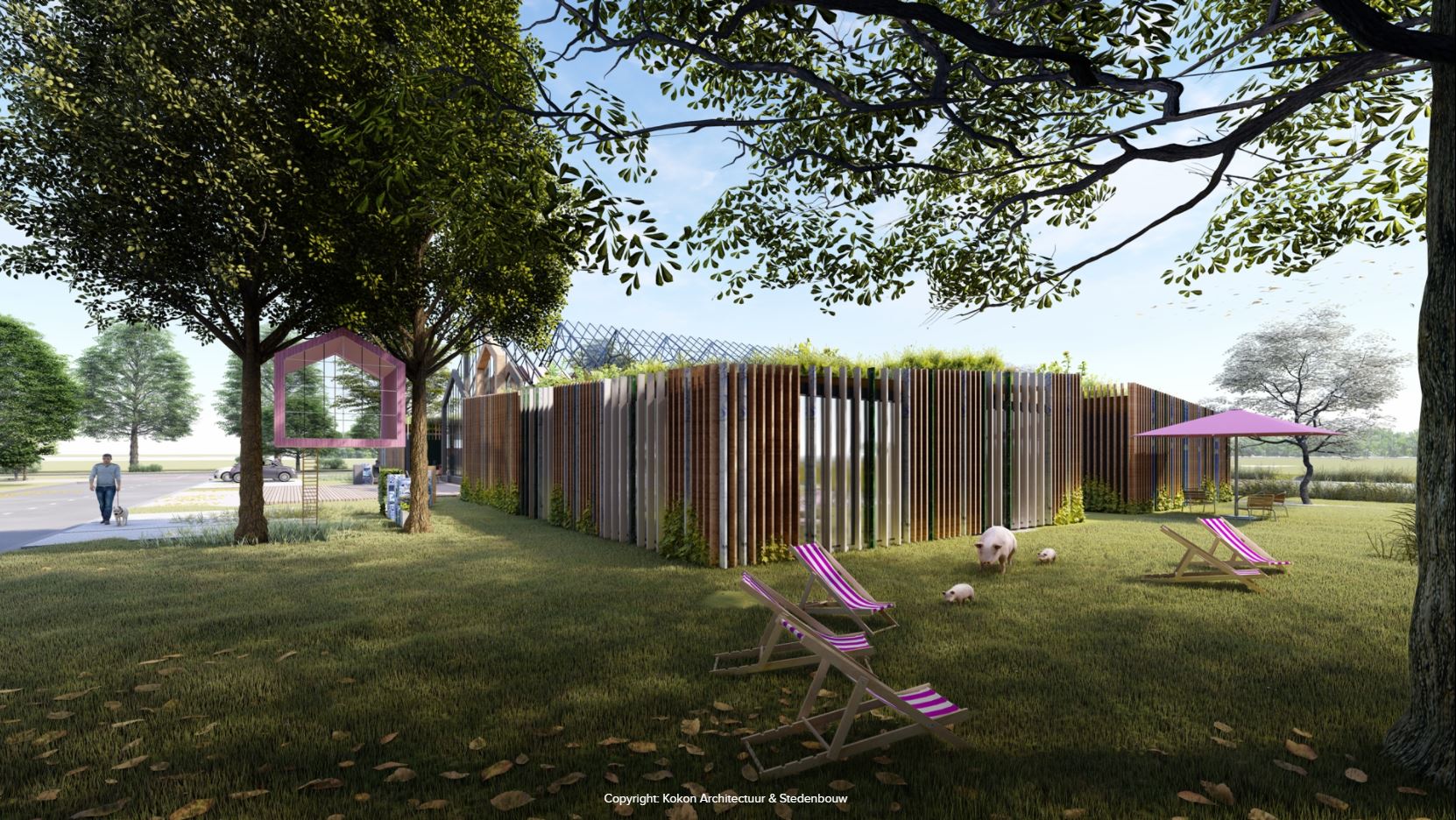 Met een plek en een idee ben je er nog niet: er moest een passend gebouw komen. De zussen vonden een bondgenoot in Henk Middelkoop, TU Delft alumnus en architect bij Kokon Architectuur & Stedenbouw. Femke legt uit dat het architectenbureau al in een vroeg stadium een rol speelde in het ontwerp: ‘Henk kennen we via Jong Management. Toen Anne en ik daar onze plannen gingen delen, gaf Henk meteen aan dat Kokon daar graag bij wilde helpen. Daardoor konden we ook snel concrete ontwerpen delen met TU Delft.’ Kleijweg onderstreept het belang van een goed ontwerp. ‘We wilden graag werken met gerecyclede materialen en zoveel mogelijk circulair bouwen. Als je het hebt over hergebruikte materialen denken mensen als snel aan oude containers en sloophout. Maar er is natuurlijk veel meer mogelijk met circulair bouwen. De ontwerpen van Kokon hielpen enorm om dit goed over te brengen.’