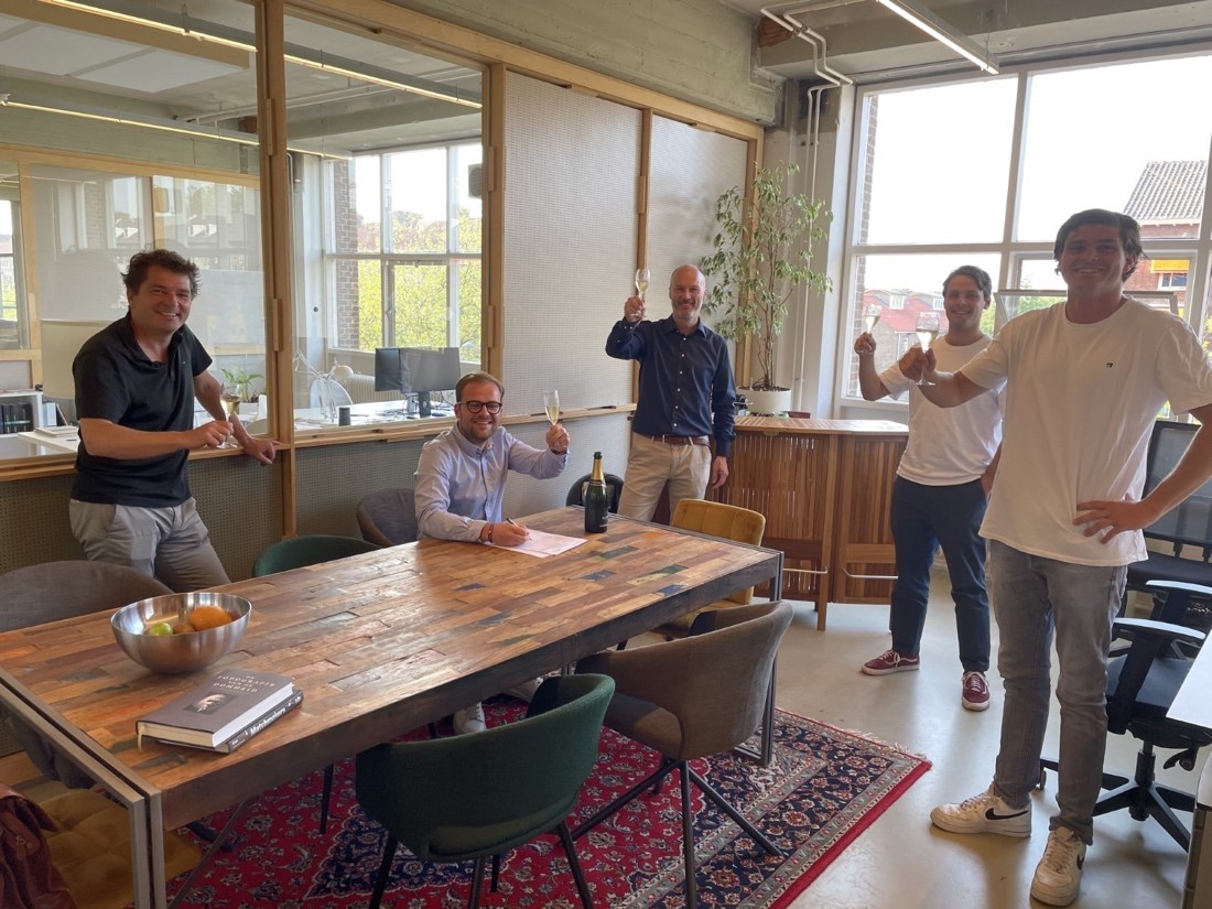 Vlnr: Roel Bloys, Joost van Suijlekom (studeerde aan de EUR), Bart Buurma (co-founders Clickdrive), Robin de Pender and Koen Kessels (dealteam)