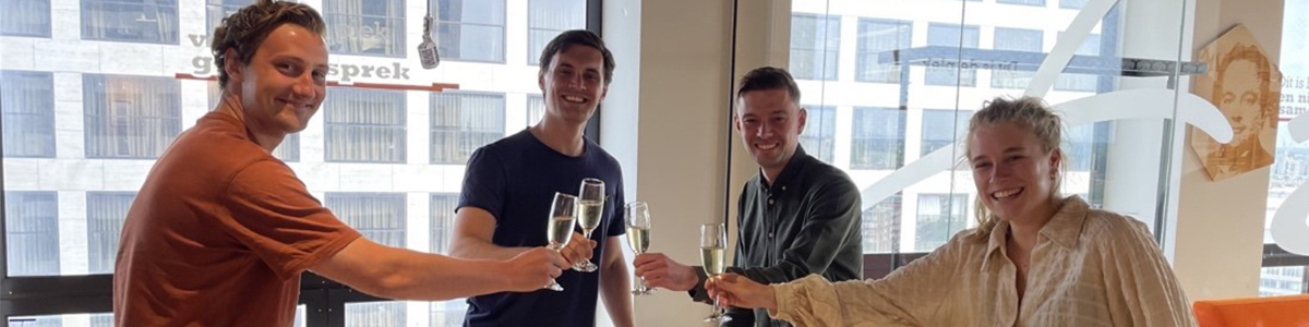 Vlnr: Thijs van de Poll (co-founder Focus, studeerde aan de EUR), Martijn Vinke (dealteam), Jard van Ingen (co-founder Focus), Femke Lückerath (dealteam)