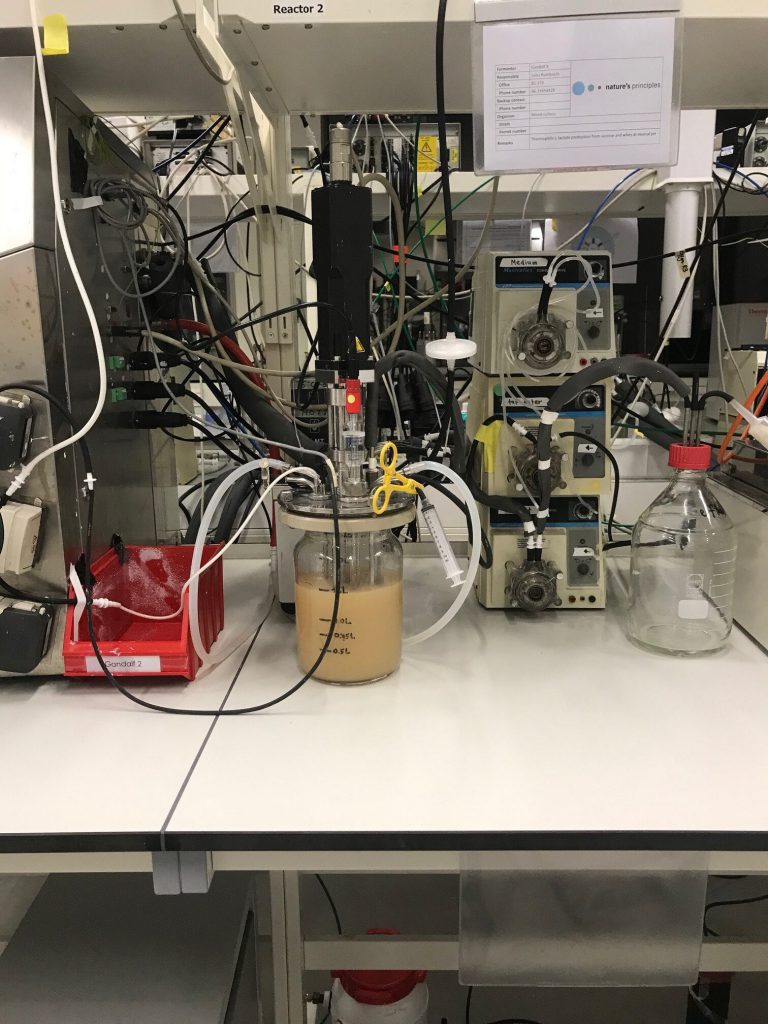 In 2017 kwamen Harman en Jules iets interessants op het spoor. In traditionele microbiologische fermentaties fermenteer je met 1 van te voren gekozen micro-organisme, een reincultuur. Denk bijvoorbeeld aan het maken van yoghurt, waarbij je melkzuurbacteriën toevoegt aan melk na het pasteuriseren. Daar tegenover staan ‘undefined mixed cultures’ – open systemen waarin allerlei verschillende micro-organismen elkaar tegenwerken en samenwerken. Jules: ‘denk aan het maken van biogas. Je kiept hier GFT afval in, en er komt biogas uit. Wij dachten: zou je op deze manier niet ook een specifiek melkzuur kunnen maken voor plastic? En kunnen we dan misschien concurreren op prijs met andere PLA, of zelfs met plastic gemaakt van aardolie?’