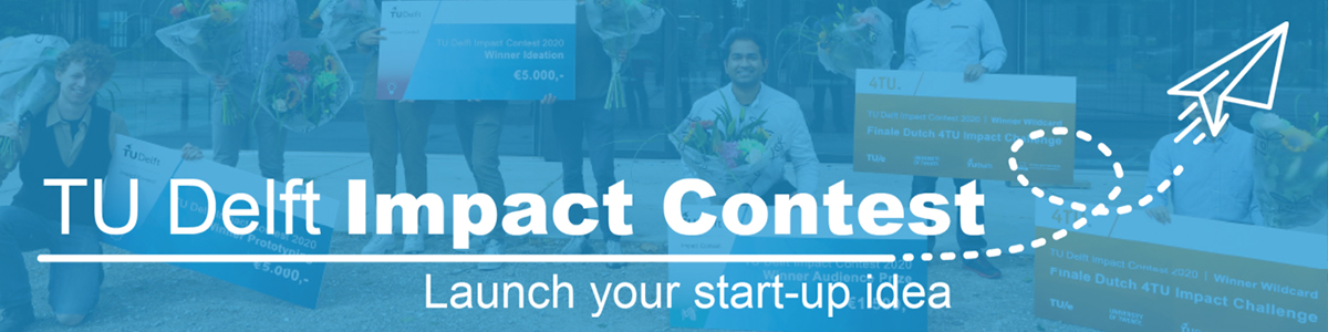 Sinds 2019 biedt de TU Delft Impact Contest studenten de mogelijkheid om hun eigen, ingenieuze ideeën, prototypes en onderzoeksprojecten verder uit te werken tot ondernemingsplannen. Het belangrijkste doel: studenten uitdagen om geweldige, out-of-the-box, innovatieve oplossingen voor maatschappelijke problemen te bedenken en deze te vertalen in echte producten en ondernemingsplannen, terwijl ze worden bijgestaan door en gebruik maken van de expertise van innovatieve en deskundige partners.