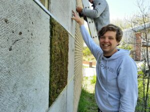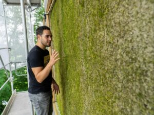 “Ons mos kan uitstekend de strijd aan met living walls en klimplanten. Die hebben beide een paar keer per jaar een hovenier nodig om te snoeien. Daarnaast zijn ze ontzettend duur: een living wall kost al snel 500 euro per vierkante meter. Wij kunnen, met een vierkante meter mos als basis, 80 vierkante meter mos groeien. Het hoeft niet gesnoeid en heeft geen plantenbak nodig. Dat maakt deze oplossing, als je gaat schalen, heel goedkoop.”