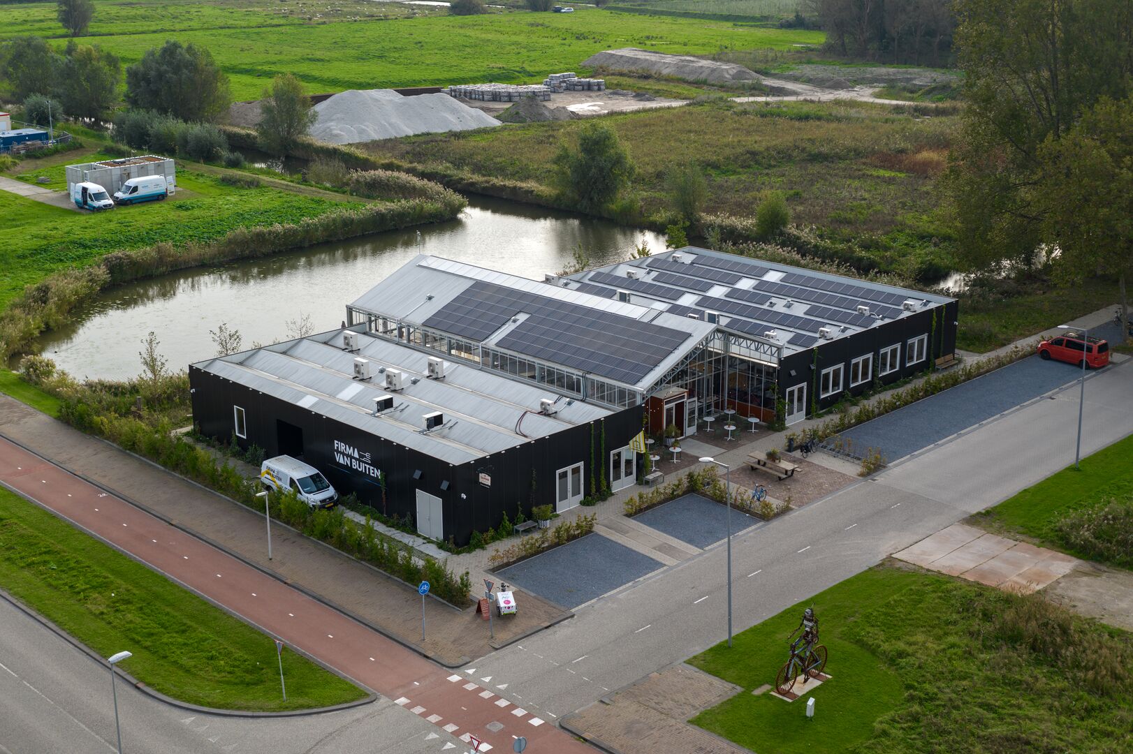 The Firma van Buiten building is heated using aquathermal energy extracted from the adjacent pond. This sustainable system harnesses low‑temperature heat from surface water without disturbing aquatic life. Even in winter, the water contains enough residual heat to warm the building. This installation serves as a pilot within an international effort to scale up aquathermal energy solutions.