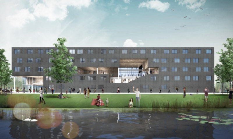 BalPol IV is home to 136 student flats and a 300 sqm common room in a covered outdoor area. What’s more, the building is all-electric and features a thick building envelope to ensure at least energy label A or A+. The green roof contributes to biodiversity and provides cooling. The façade is fitted with bat boxes.