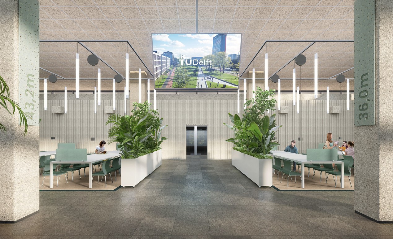 The first floor of the main building of the Faculty of Civil Engineering and Geosciences (CEG) is undergoing renovation. After decades of intensive use and various modifications, this central floor is in need of renewal. The goal: a future-proof, sustainable and inviting student street that serves as the faculty’s calling card. This project is the first step in an integrated approach to the CEG building (building 23). In this context, the indoor climate will also be significantly improved by the addition of modern air treatment and climate control systems. This intervention is an important part of the integrated approach and contributes to a healthy and attractive learning and working environment.