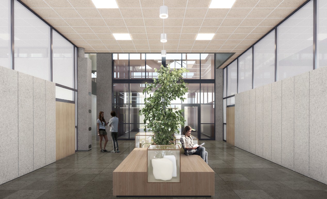 The renovated first floor will become the faculty’s “living room”: a representative and functional meeting place for students, staff and visitors. In addition to an attractive interior design, technical improvements will be made in the areas of air quality, energy consumption and safety. The result will be a sustainable, comfortable and inspiring environment that reflects CEG’s vision.
