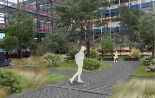 The first greening project to be completed is the Urban climate forest next to the Faculty of Architecture and the Built Environment, where a paved forecourt has been transformed into a lush bioswale abounding with trees. It’s a terrific place to relax, while also creating space for new scientific research and helping to solve climate change challenges. More information can be found here.
