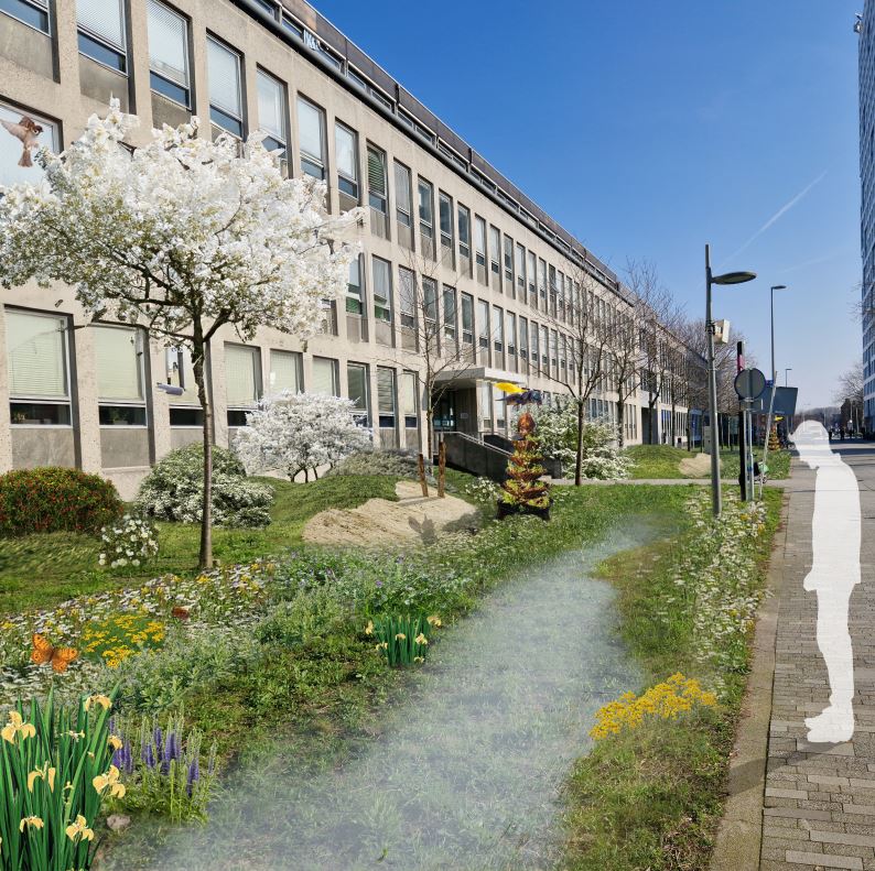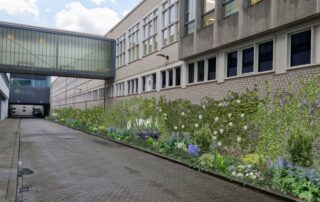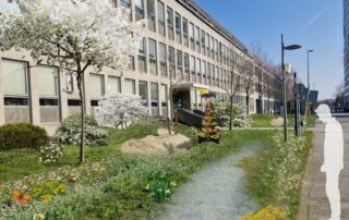 We’re working on greening buildings and outdoor spaces, as well as upgrading existing green spaces. In a series of different phases, we will spruce up carefully selected sites that connect ecological hotspots throughout the campus. What’s more, all these sites play an important role in handling extreme rainfall and downpours, while serving as cool, shady locations in the summer heat, making the campus more resilient to the challenges of the future.