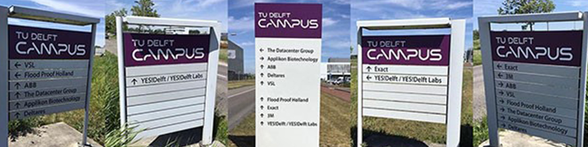 Last week the signing of the Southern part of TU Delft Campus received an update, with the new TU Delft Campus logo added to the already present chevrons.