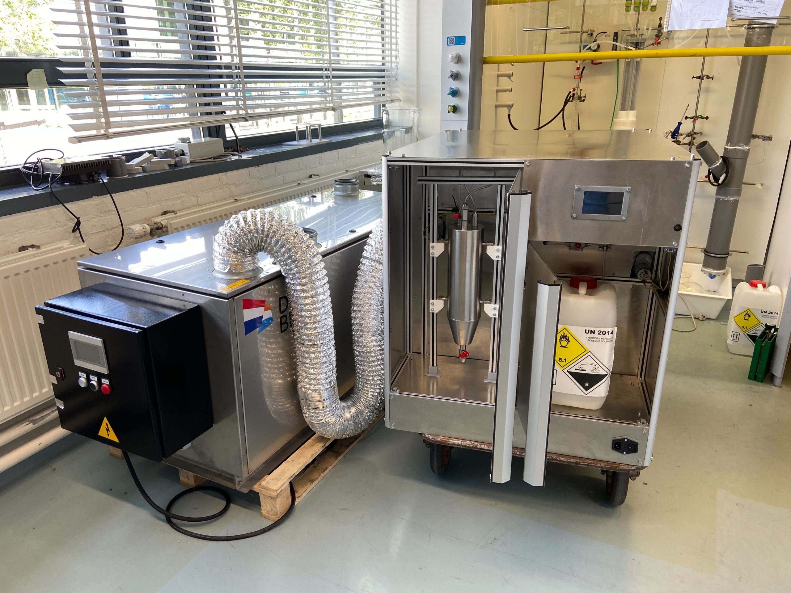 As a spin-off from TU Delft, Delft Enterprises supported SolvGE during the start of their company. The start-up is a member of the Aerospace Innovation Hub on TU Delft Campus and won the Aerospace Start-up Voucher in 2020. SolvGE came about as a Master Thesis research by former Space Engineering student Jaime Quesada, who together with Pranav Prasad and under the supervision of Dr. B.V.S Jyoti developed the technology that upcycles low concentrations of peroxide upto 99.5% concentrations, initially required by the space propulsion market. Last year, SolvGE launched the first Researcher Grade H2O2 Concentrator or abbreviated to RGP using the same principle but for smaller amounts.